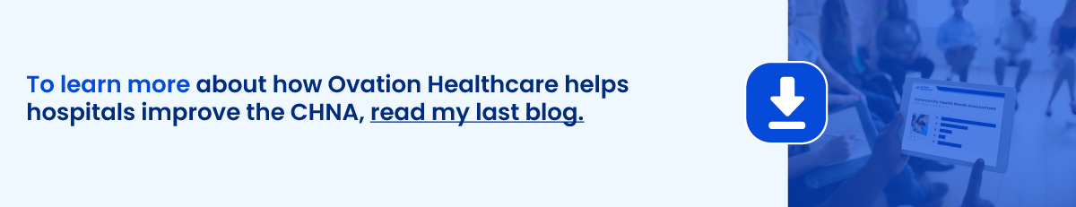 With over 35 completed Community Health Needs Assessments (CHNA) in 2022, and more in process, the Ovation Healthcare Leadership Advisory Services team continues to refine our processes to best serve our clients in markets across the country. Through this work, we have identified best practices that help produce meaningful and actionable reports and implementation plans which reflect the communities we serve, ultimately leading to measurable impact on the health of those communities.